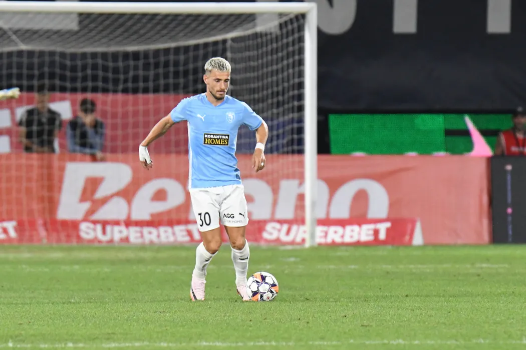 Vlad Dragomir în meciul de fotbal dintre FC CFR 1907 Cluj și Pafos FC , contând pentru play-off - ul Conference League, desfășurat pe Stadionul Dr.Constantin Rădulescu din Cluj-Napoca, joi 22 august 2024. © FOTO: Flaviu BUBOI/SPORT PIC5TURES