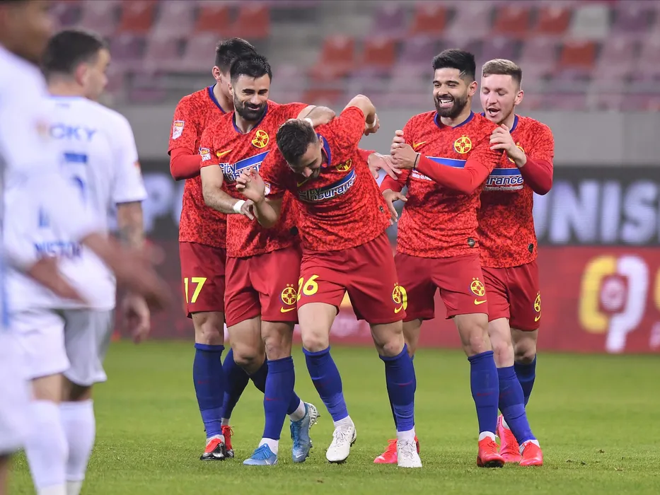 Bucurie stelista cu Valentin Cretu, Ionut Vina,Ionut Pantaru si Razvan Oaida in meciul de fotbal dintre FCSB si Universitatea Craiova, contand pentru Liga 1 Casa Pariurilor, disputat pe Arena Nationala din Bucuresti, duminica 8 martie2020. © FOTO:Razvan Pasarica/SPORT PICTURES