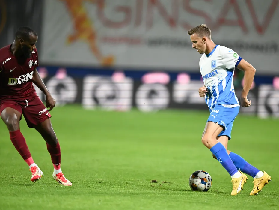 Nicusor Silviu Bancu si Aly Abeid in meciul de fotbal dintre FC CFR 1907 Cluj si Universitatea Craiova, contand pentru Superliga Superbet, desfasurat pe Stadionul Dr.Constantin Radulescu din Cluj-Napoca, duminica 3 august 2025. © FOTO:Flaviu Buboi/SPORT PICTURES