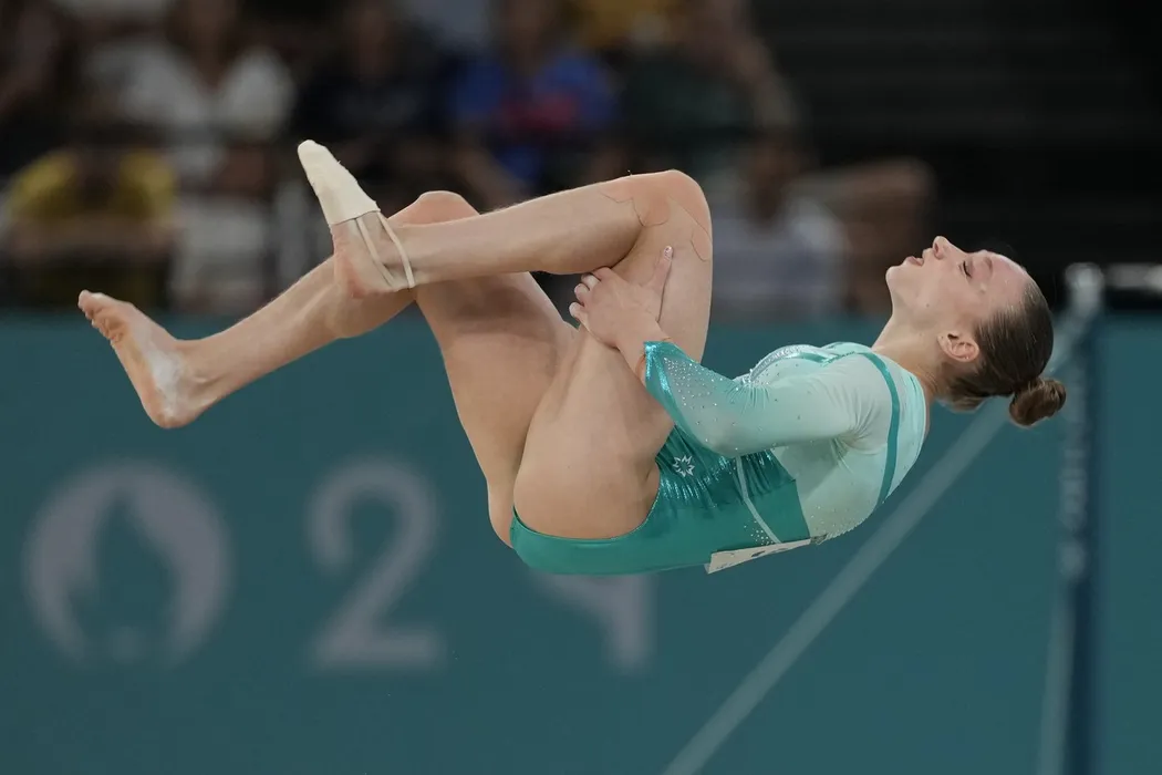 Ana Barbosu, of Romania, competes during the women's artistic gymnastics individual floor finals at Bercy Arena at the 2024 Summer Olympics, Monday, Aug. 5, 2024, in Paris, France.,Image: 896193613, License: Rights-managed, Restrictions: This content is intended for editorial use only. For other uses, additional clearances may be required., Model Release: no
