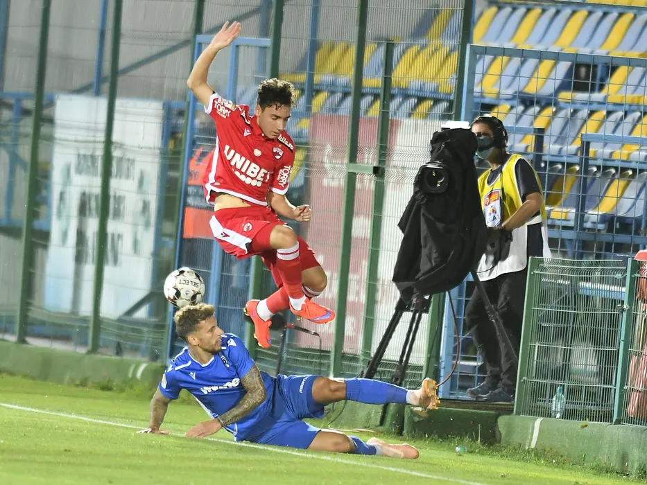 Nicolas Martin Gorobsov si Ahmed Andrei Mustafa Bani in meciul de fotbal dintre FC Voluntari si Dinamo Bucuresti, contand pentru play-out-ul Ligii 1 Casa Pariurilor, disputat fara spectatori pe Stadionul Anghel Iordanescu din Voluntari, duminica 2 august 2020.© FOTO:Razvan Pasarica/SPORT PICTURES