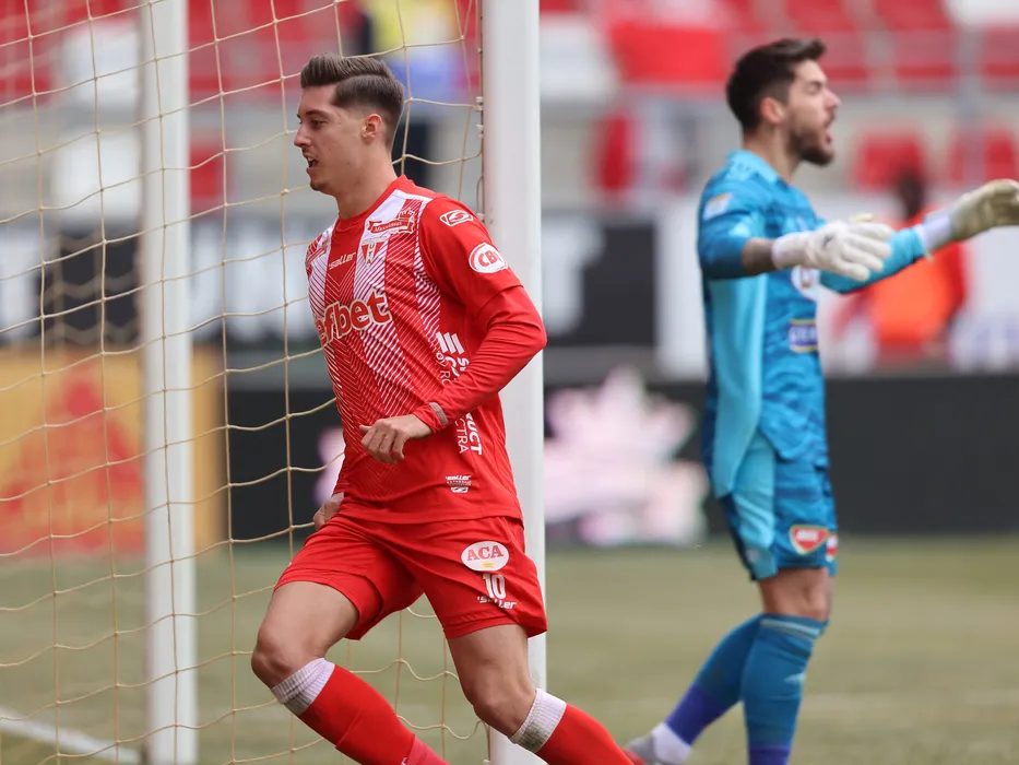 David Raul Miculescu se bucura dupa un gol marcat in meciul de fotbal dintre UTA Arad si Sepsi OSK Sfantu Gheorghe, contand pentru Liga 1 Casa Pariurilor, desfasurat pe Stadionul Francisc Neuman din Arad, sambata 05 februarie 2022. © FOTO:Ciprian Petcut/SPORT PICTURES