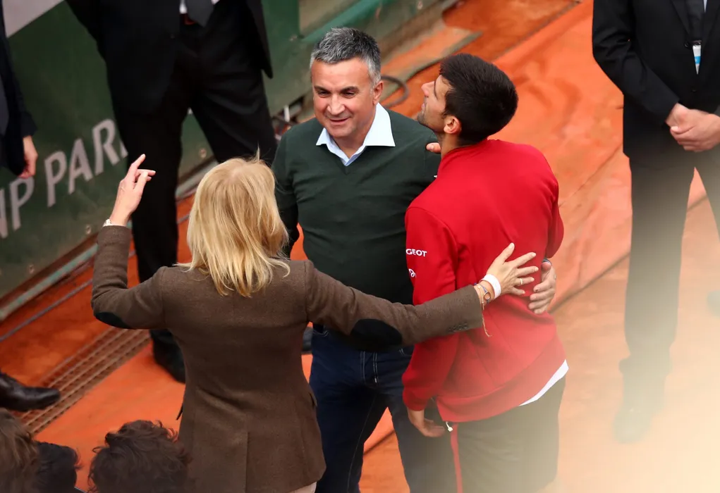 PARIS, FRANCE - JUNE 05: Novak Djokovic of Serbia celebrates victory with his parents, Dijana and Srdan Djokovic during the Men's Singles final match against Andy Murray of Great Britain on day fifteen of the 2016 French Open at Roland Garros on June 5, 2016 in Paris, France. (Photo by Julian Finney/Getty Images)