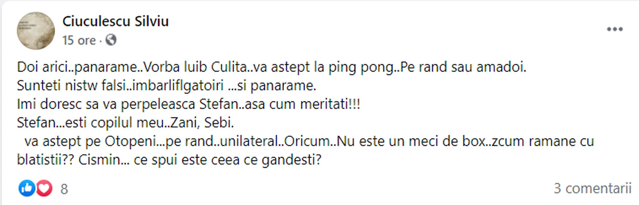 Tatăl lui Ștefan Ciuculescu, reacție suburbană la adresa lui Sebastian Chitoșcă. Mesaj dur pentru fostul jucător al FCSB-ului și Zanni. „Falși și îmbărligători!” Amenințări la adresa celor doi