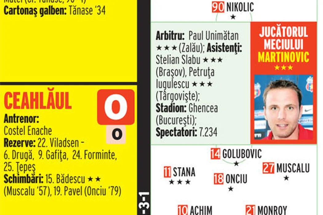 Tatu, amenințat de sârb! Martinovic, încă o dată EROU pentru roș-albaștri!** Steaua – Ceahlăul 1-0