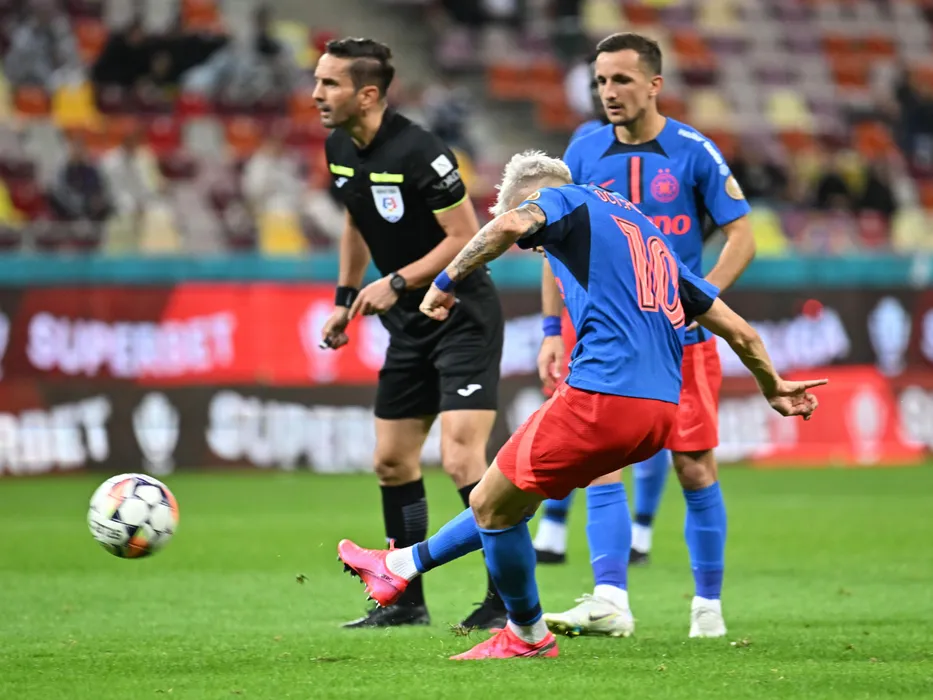 Octavian George Popescu marchează un gol din lovitura libera in meciul de fotbal dintre FCSB si Gloria Buzau, contand pentru Superliga Superbet, desfasurat pe Arena Nationala din Bucuresti, duminica 6 octombrie 2024. © FOTO:Razvan Pasarica/SPORT PICTURES