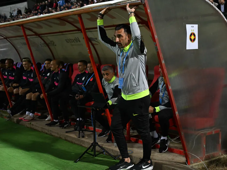 Elias Charalambous reacționează pe banca ros albastra la meciul dintre FC Botosani si FCSB, contand pentru Superliga Superbet, desfasurat pe Stadionul Municipal din Botosani, vineri 19 septembrie 2025. © FOTO:Razvan Pasarica/SPORT PICTURES