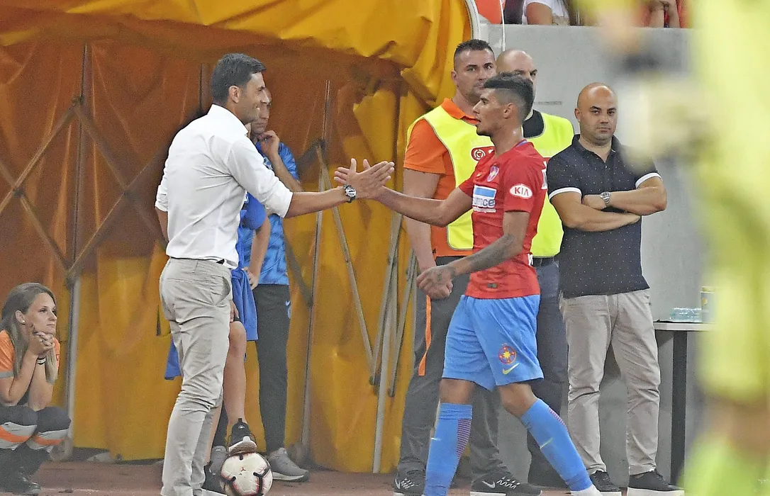 Nicolae Dica si Florinel Coman in meciul de fotbal dintre FCSB si NK Rudar Velenje, contand pentru Liga Europa, desfasurat pe Arena Nationala din Bucuresti, joi 2 august 2018. © FOTO Razvan Pasarica/SPORT PICTURES