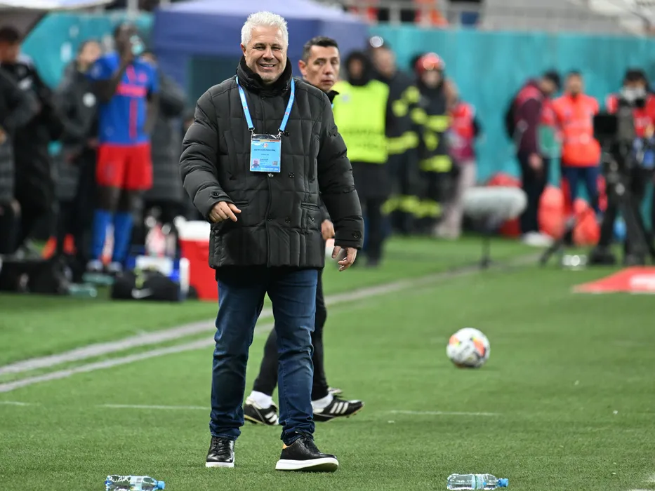 Marius Sumudica reacționează in meciul de fotbal dintre FCSB si Rapid Bucuresti, contand pentru Play off-ul Superligii Superbet, desfasurat pe Arena Nationala din Bucuresti, duminica 16 martie 2025. © FOTO:Razvan Pasarica/SPORT PICTURES