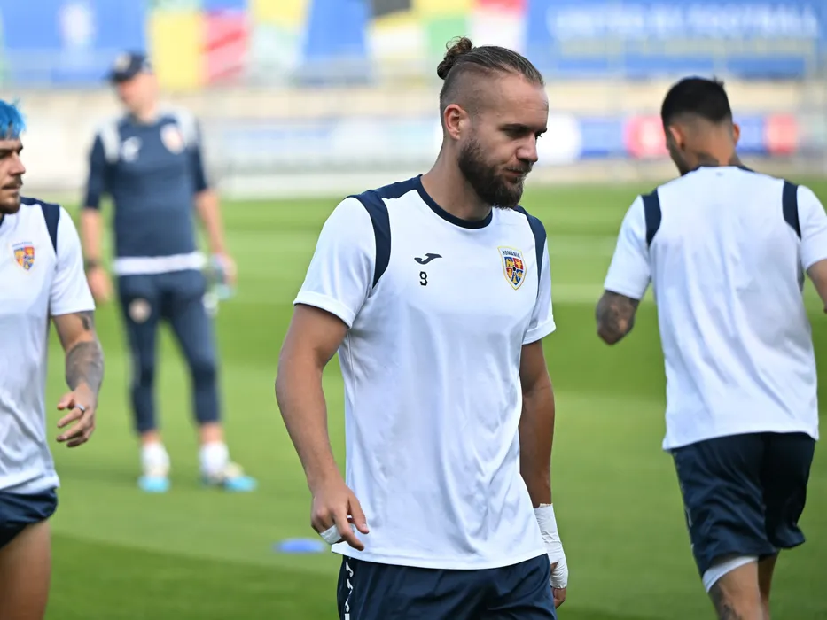 Fotbalistii romani printre care George Puşcaş la antrenamentul oficial de dinaintea meciului impotriva Slovaciei, desfasurat pe Stadion am Brentanobad din Frankfurt, marti 25 iunie 2024. © FOTO:Razvan Pasarica/SPORT PICTURES