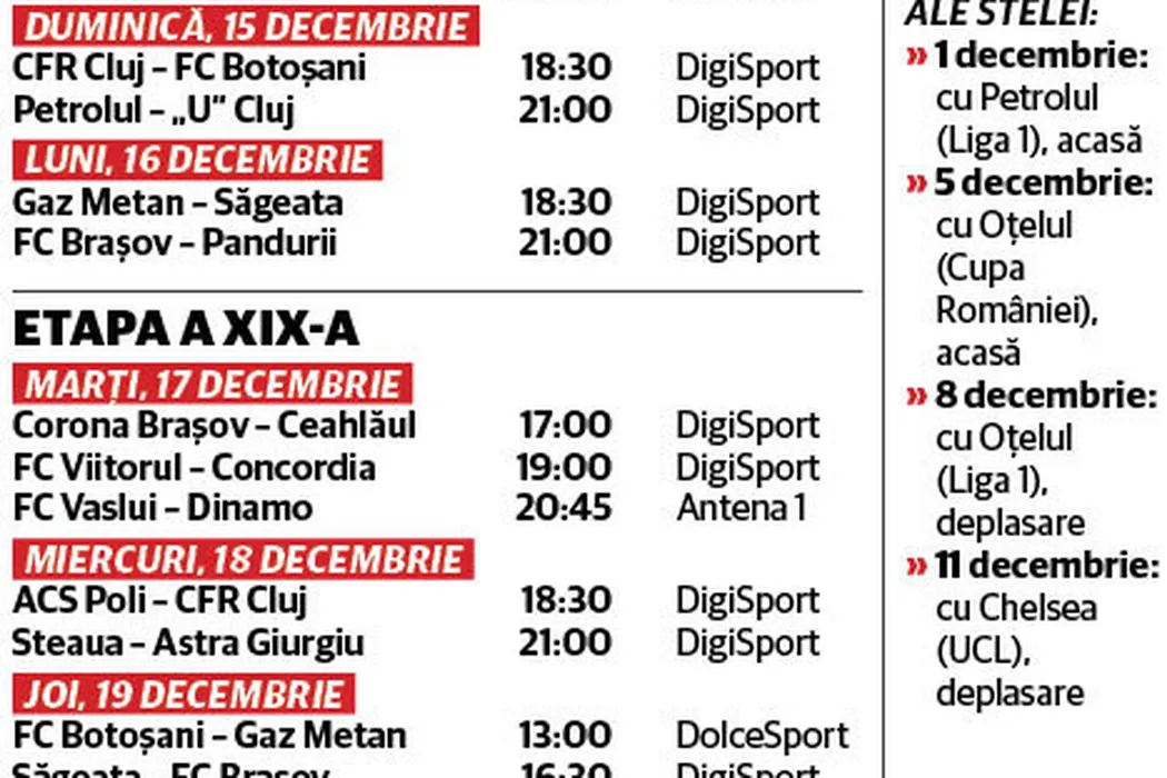 Televiziunile s-au opus! LPF a confirmat ieri: steliștii vor avea cel mai aglomerat sfârșit de an din istorie