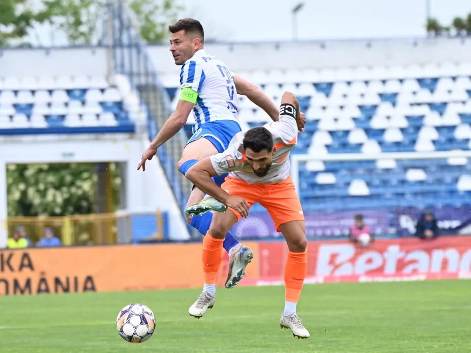 Mihai Catalin Bordeianu si Georgian Honciu in meciul de fotbal dintre Poli Iasi si FC Metaloglobus Bucuresti, contand pentru Baraj SuperLiga Superbet, desfasurat pe Stadionul Emil Alexandrescu din Iasi, duminica 25 mai 2025. © FOTO: Dragos Pascaneanu/SPORT PICTURES