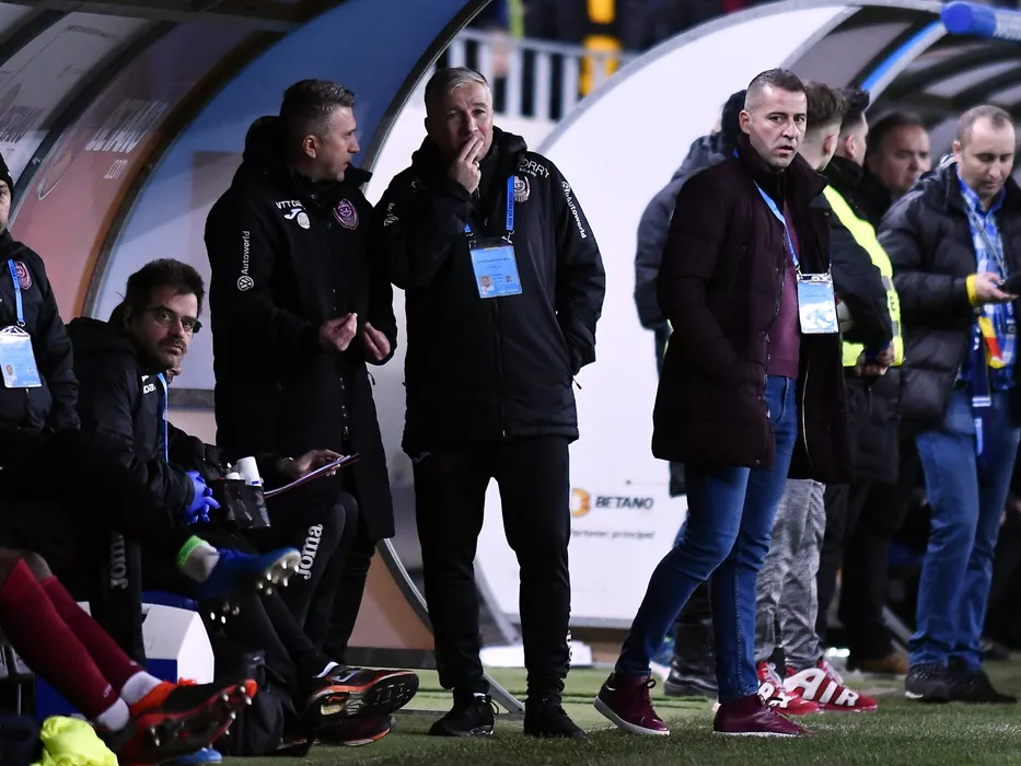 Alin Minteuan,Dan Petrescu si Cristian Panin in meciul de fotbal dintre Universitatea Craiova si CFR Cluj, contand pentru Liga 1 Casa Pariurilor, disputat pe Stadionul Ion Oblemenco din Craiova, duminica 23 februarie 2019. © FOTO:Razvan Pasarica/SPORT PICTURES