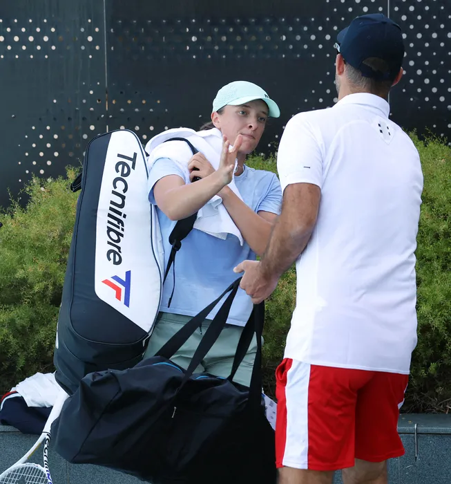 Iga Swiatek and Daniel Michalski training session at the RAC Arena earlier today in Perth, Western Australia.