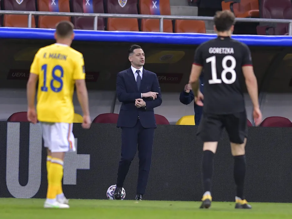 Mirel Radoi reactioneaza in meciul de fotbal dintre Romania si Germania, din cadrul Preliminariilor Campionatului Mondial 2022, desfasurat fara spectatori pe Arena Nationala din Bucuresti, duminica 28 martie 2021. © FOTO:Razvan Pasarica/SPORT PICTURES