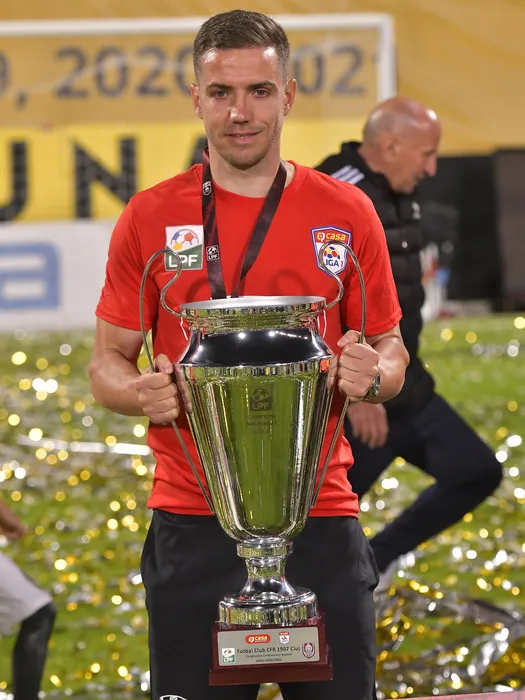 Alexandru Mihaita Chipciu pozeaza alaturi de trofeul decernat castigatoarei campionatului dupa meciul de fotbal dintre CFR Cluj si FCSB, contand pentru Play-off-ul Ligii 1 Casa Pariurilor, desfasurat pe Stadionul Dr. Constantin Radulescu din Cluj Napoca, marti 25 mai 2021. © FOTO:Razvan Pasarica/SPORT PICTURES