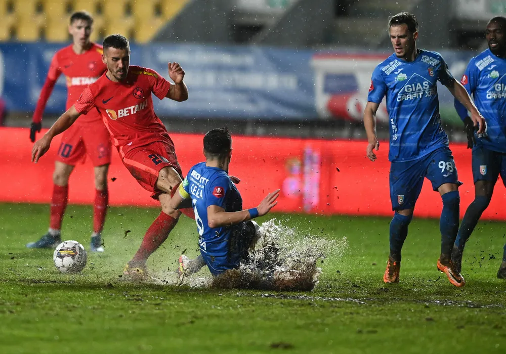 Razvan Constantin Oaida si Tiberiu Ionut Capusa in meciul de fotbal dintre Chindia Targoviste si FCSB, contand pentru Superliga Superbet, desfasurat pe Stadionul Ilie Oana din Ploiesti, duminica 11 decembrie 2022. © FOTO:Razvan Pasarica/SPORT PICTURES