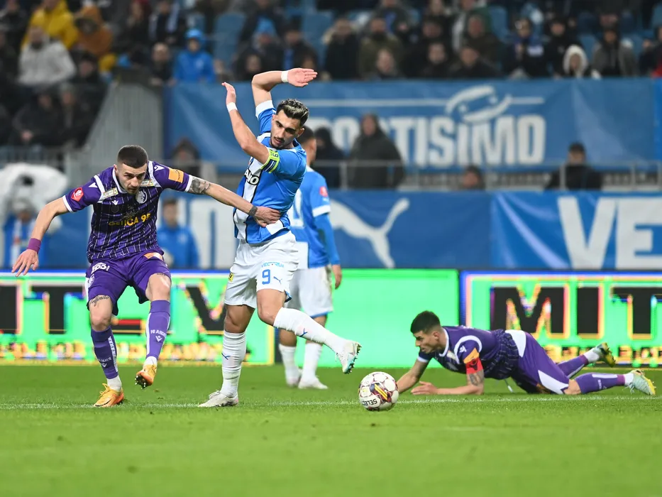 Grigore Ioan Turda si Andrei Virgil Ivan in meciul de fotbal dintre Universitatea Craiova si FC Arges, contand pentru Superliga Superbet, desfasurat pe Stadionul Ion Oblemenco din Craiova, miercuri 1 martie 2023. © FOTO:Razvan Pasarica/SPORT PICTURES