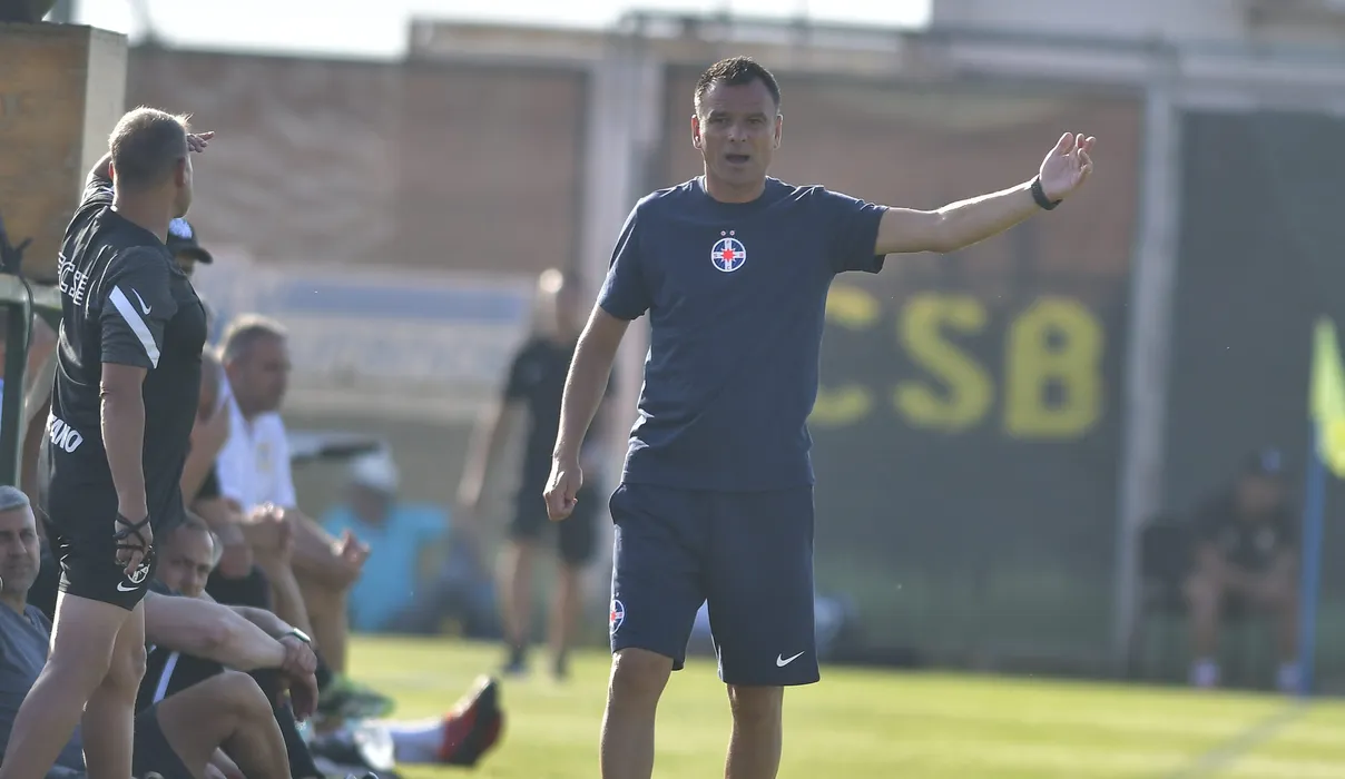 Toni Petrea reactioneaza in meciul amical de fotbal dintre FCSB si CS Mioveni, desfasurat la Baza FCSB din Berceni, miercuri 6 iulie 2022. © FOTO:Razvan Pasarica/SPORT PICTURES