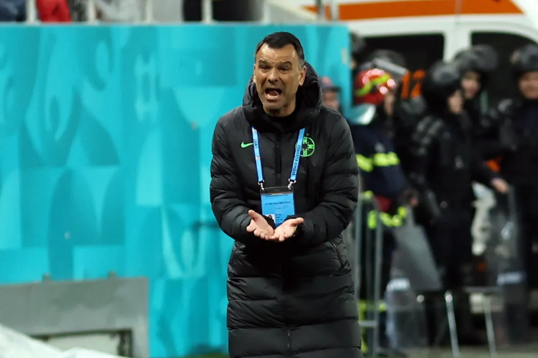 Anton Petrea, antrenorul echipei FCSB, urmareste meciul de fotbal contra formatiei Universitatea Craiova din etapa 3 a play-off-ului Ligii 1, disputat pe Arena Nationala din Bucuresti, duminica, 3 aprilie 2022. GEORGE FILIP / MEDIAFAX FOTO