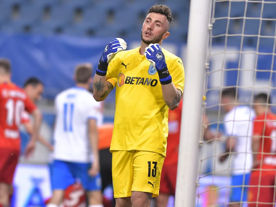 Mirko Pigliacelli in meciul de fotbal dintre Universitatea Craiova si FCSB, contand pentru Play-off-ul Ligii 1 Casa Pariurilor, desfasurat fara spectatori pe Stadionul Ion Oblemenco din Craiova, joi 29 aprilie 2021. © FOTO:Razvan Pasarica/SPORT PICTURES
