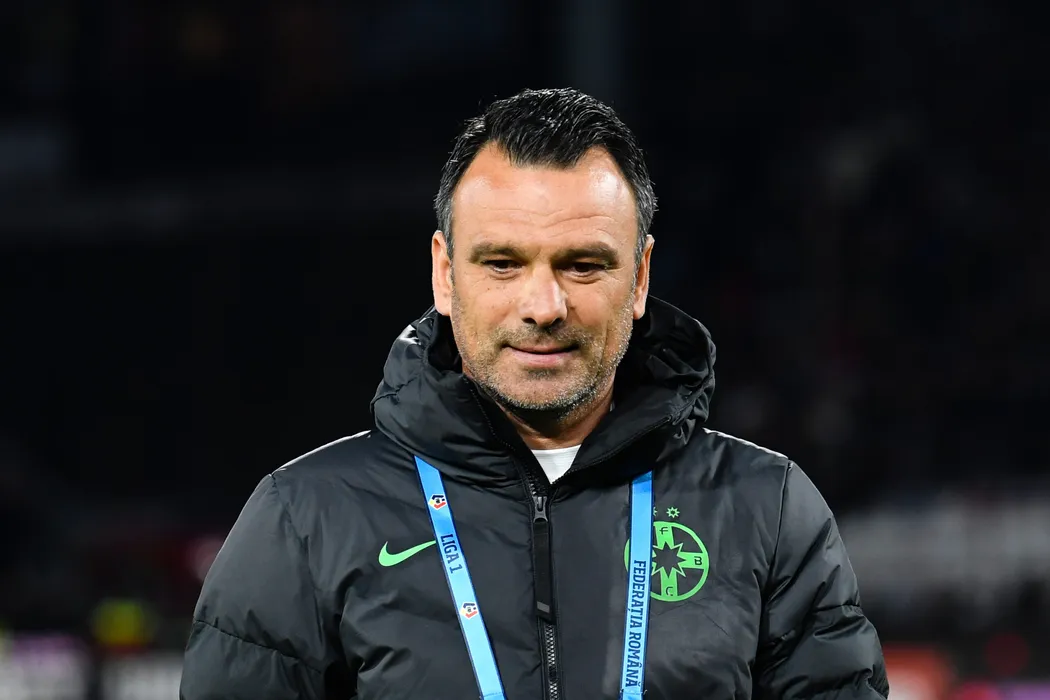 Anton Petrea, antrenorul echipei FCSB, urmareste meciul de fotbal contra formatiei CFR Cluj din etapa a 5-a a play-off-ului Ligii 1, disputat pe stadionul Dr. Constantin Radulescu din Cluj-Napoca, duminica, 17 aprilie 2022. FLAVIU BUBOI / MEDIAFAX FOTO