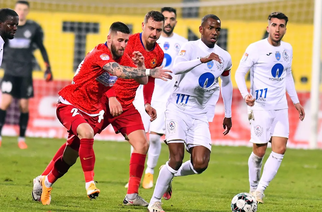 Ovidiu Marian Popescu, Andrei George Miron, Nicolao Manuel Dumitru Cardoso si Octavian Ronaldo Andrei Deaconu in meciul de fotbal dintre Gaz Metan Medias si FCSB, contand pentru Liga 1 Casa Pariurilor, desfasurat fara spectatori pe Stadionul Municipal din Medias, luni 23 noiembrie 2020. © FOTO:Razvan Pasarica/SPORT PICTURES