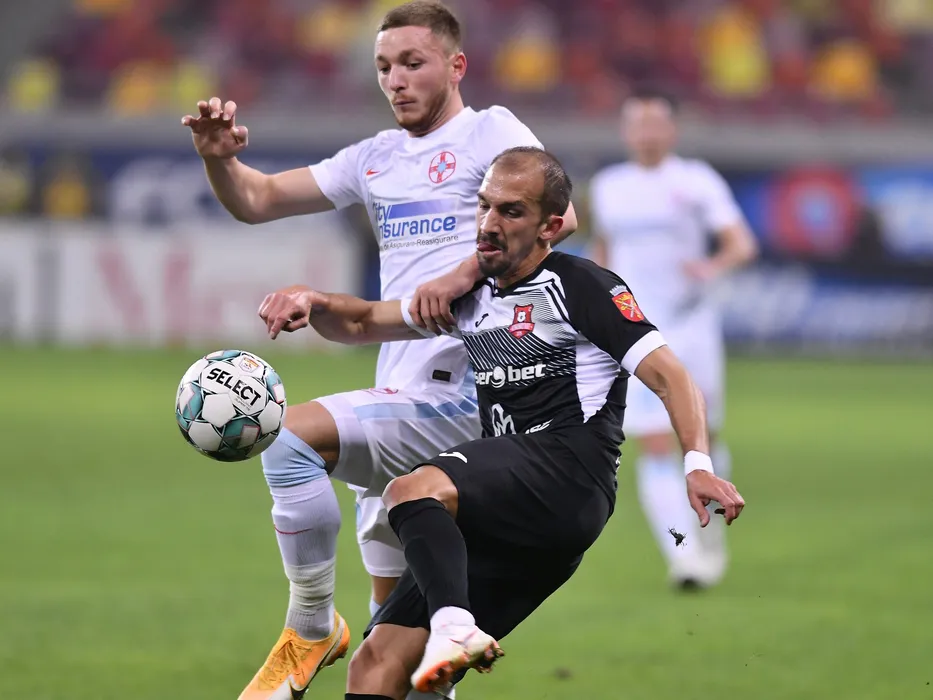 Ionut Constantin Pantiru si Dias David Caiado in meciul de fotbal dintre FCSB si AFC Hermannstadt, contand pentru Liga 1 Casa Pariurilor, desfasurat fara spectatori pe Arena Nationala din Bucuresti, luni 26 octombrie 2020. © FOTO:Razvan Pasarica/SPORT PICTURES