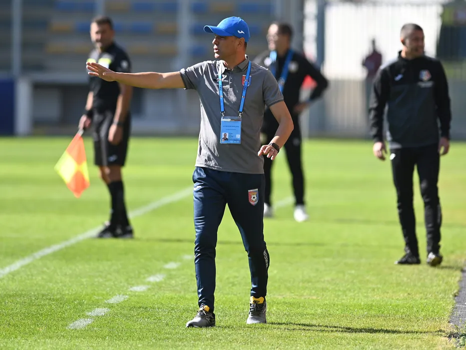 Toni Petrea reactioneaza in meciul de fotbal dintre Chindia Targoviste si CS Mioveni, contand pentru Superliga Superbet, desfasurat pe Stadionul Ilie Oana din Ploiesti, duminica 16 octombrie 2022. © FOTO:Razvan Pasarica/SPORT PICTURES