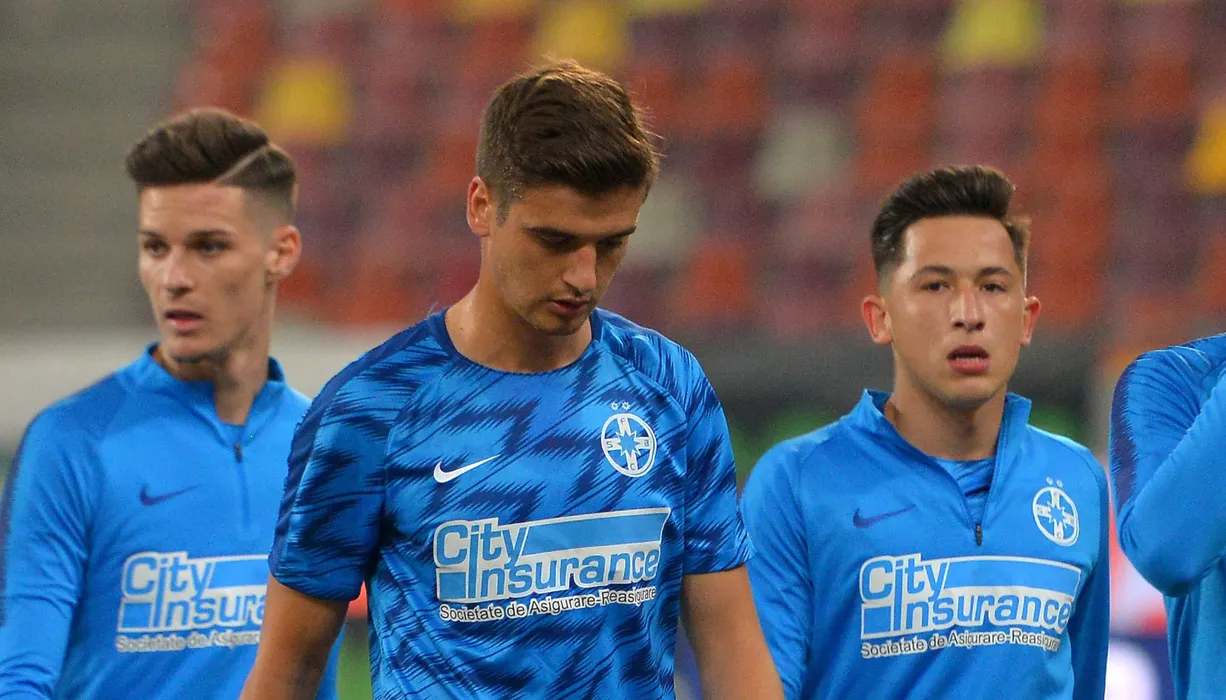Fotbalistii stelisti Dennis Man,Dragos Nedelcu,Olimpiu Morutan si Romario Benzar la incalzire inaintea meciului de fotbal dintre Dinamo Bucuresti si FCSB, contand pentru Liga 1 Betano, disputat pe Arena Nationala din Bucuresti, duminica 11 noiembrie 2018. © FOTO Razvan Pasarica/SPORT PICTURES