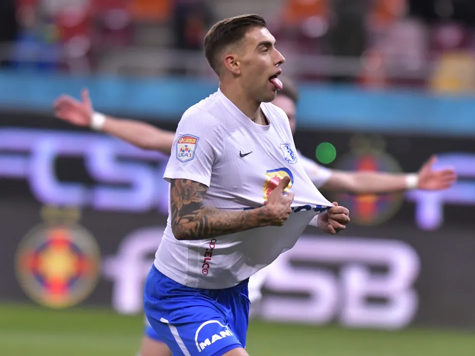 Adrian Petre Tabarcea se bucura dupa un gol marcat in meciul de fotbal dintre FCSB si Farul Constanta, contand pentru Liga 1 Casa Pariurilor, desfasurat pe Arena Nationala din Bucuresti, duminica 27 februarie 2022. © FOTO:Razvan Pasarica/SPORT PICTURES