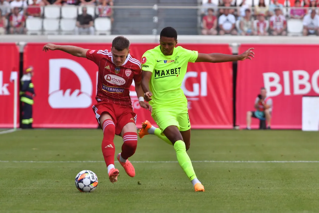 Darius Adrian Oroian și Goncalves Tailson Pinto în meciul de fotbal dintre Sepsi OSK Sfantu Gheorghe și Poli Iași, contând pentru SuperLiga Superbet, desfășurat pe Stadionul SEPSI Arena OSK din Sfântu Gheorghe,sâmbătă 13 iulie 2024. © FOTO: Bogdan BALAS/SPORT PICTURES
