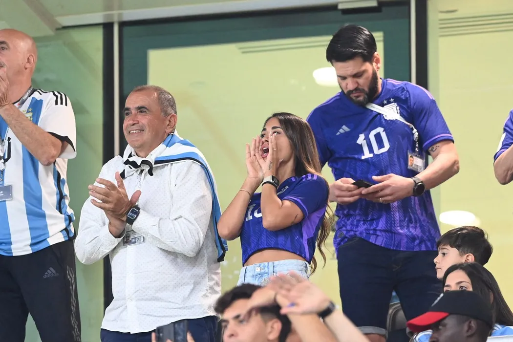 Antonella Roccuzzo, la femme de Lionel Messi et son fils Mateo, dans les tribunes du match "Argentine - Australie" lors de la Coupe du Monde 2022 au Qatar (FIFA World Cup Qatar 2022), le 3 décembre 2022. Philippe Perusseau / Bestimage Merci de flouter le visage des enfants avant parution. Antonella Roccuzzo, wife of Lionel Messi and his son Mateo, in the stands of the match "Argentina - Australia" during the 2022 World Cup in Qatar (FIFA World Cup Qatar 2022), December 3, 2022. Please pixelate children's faces before publication.,Image: 742142553, License: Rights-managed, Restrictions: , Model Release: no