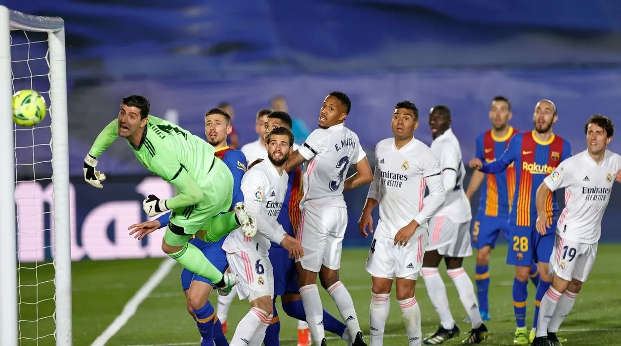 Real Madrid v FC Barcelona, LaLiga Santander, date 30. Football, Alfredo Di Stefano Stadium, Madrid, Spain - 10 APR 2021,Image: 604646999, License: Rights-managed, Restrictions: EDITORIAL USE ONLY No use with unauthorised audio, video, data, fixture lists (outside the EU), club/league logos or "live" services. Online in-match use limited to 45 images (+15 in extra time). No use to emulate moving images. No use in betting, games or, Model Release: no
