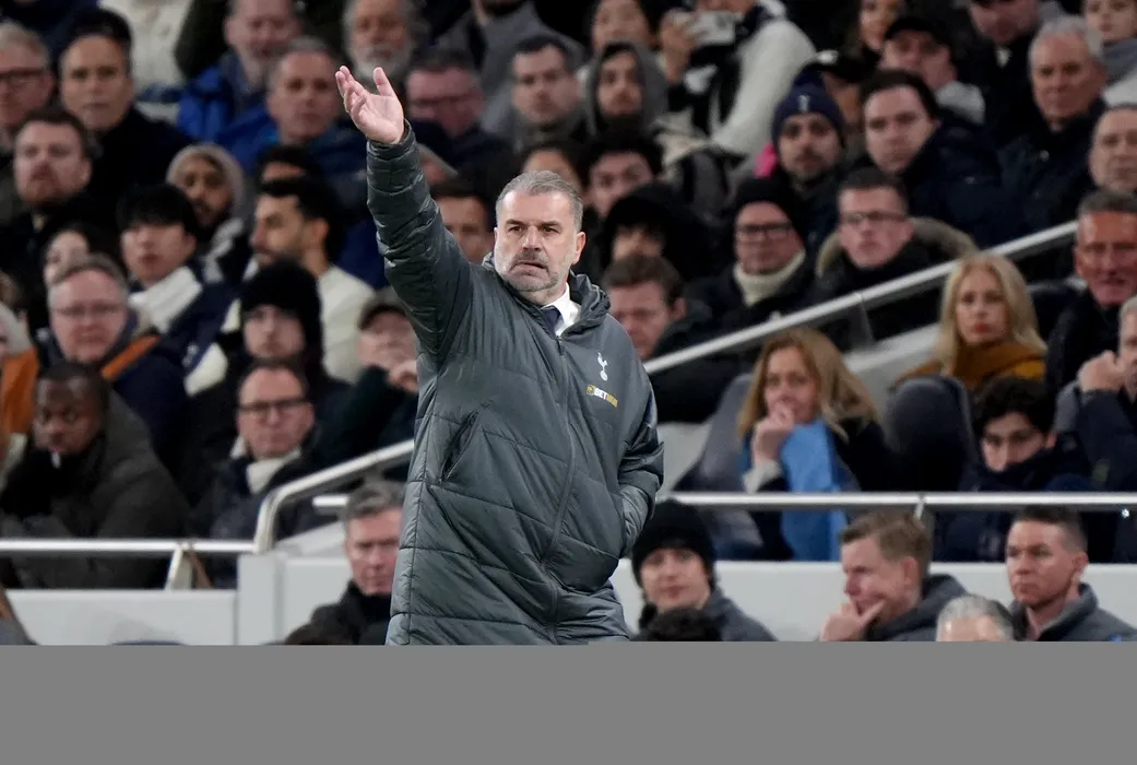 26 February 2025, United Kingdom, London: Tottenham Hotspur manager Ange Postecoglou reacts during the English Premier League soccer match between Tottenham Hotspur and Manchester City at Tottenham Hotspur Stadium. Photo: Bradley Collyer/PA Wire/dpa