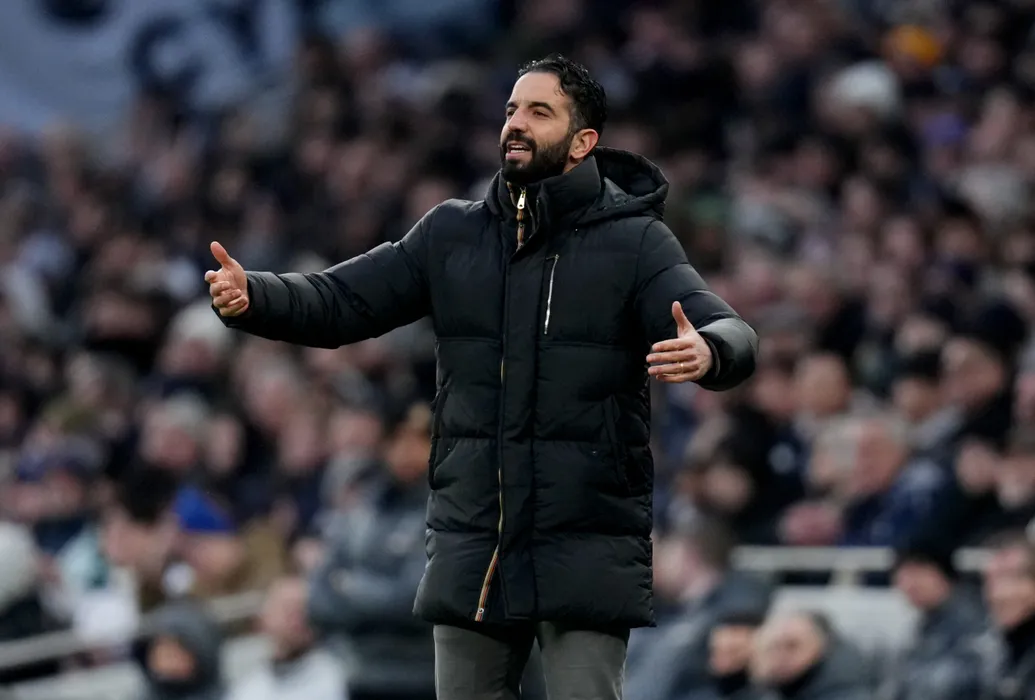 16 February 2025, United Kingdom, London: Manchester United manager Ruben Amorim shouts at his players from the touchline during the English Premier League soccer match between Tottenham Hotspur and Manchester United at the Tottenham Hotspur Stadium. Photo: John Walton/PA Wire/dpa
