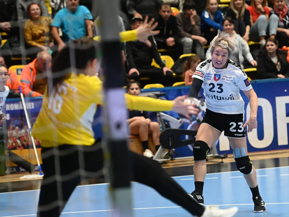 Iryna Glibko in meciul de handbal feminin dintre SCM Ramnicu Valcea si Praktiker Vac, contand pentru EHF European League, desfasurat in Sala Traian din Ramnicu Valcea, duminica 8 ianuarie 2023. © FOTO:Razvan Pasarica/SPORT PICTURES