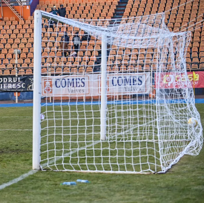 Mingea intra din nou in poarta aparata de Alexandru Vasile Barna in meciul de fotbal dintre ACSM Ceahlaul Piatra Neamt si FC Voluntari, contand pentru Liga 2 Casa Pariurilor, desfasurat pe Stadionul Ceahlaul din Piatra Neamt, sambata 28 februarie 2026. © FOTO:Dan Duta/SPORT PICTURES
