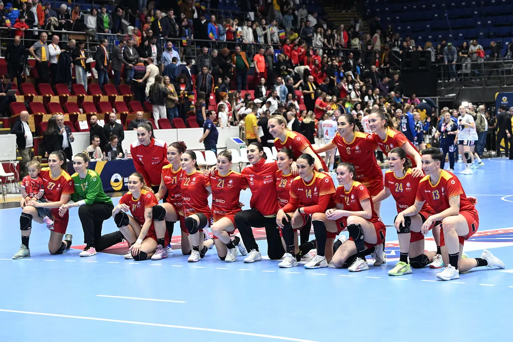 Handbalistele romance la o fotografie de grup realizata dupa meciul de handbal feminin dintre Romania si Norvegia, din cadrul EHF Euro Cup 2026, desfasurat in Sala Polivalenta Ioan Kunst Ghermanescu din Bucuresti, miercuri 8 aprilie 2026. © FOTO:Razvan Pasarica/SPORT PICTURES