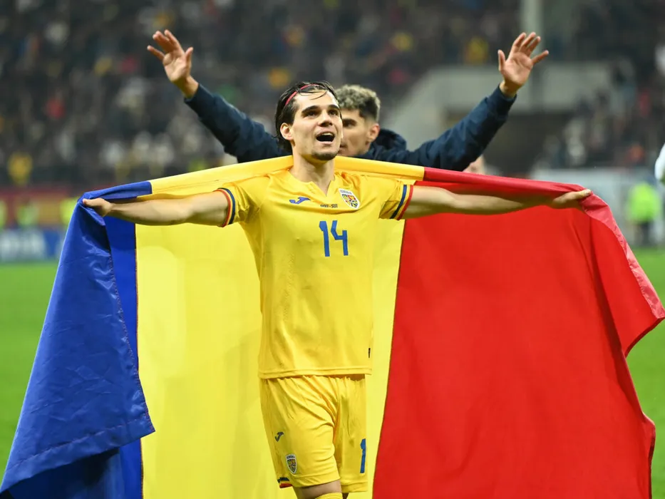 Ianis Hagi saluta suporterii alaturi de tricolor dupa meciul de fotbal dintre Romania si Elvetia, din cadrul preliminariilor Campionatului European 2024, desfasurat pe Arena Nationala, marti 21 noiembrie 2023. © FOTO:Razvan Pasarica/SPORT PICTURES