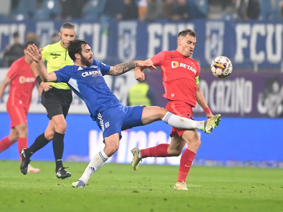 Aurelian Ionut Chitu si Darius Dumitru Olaru in meciul de fotbal dintre FC U Craiova si FCSB, contand pentru Superliga Superbet, desfasurat pe Stadionul Ion Oblemenco din Craiova, duminica 13 noiembrie 2022. © FOTO:Razvan Pasarica/SPORT PICTURES
