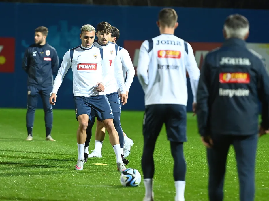 Fotbalistii romani Cristian Manea si Andrei Ratiu la antrenamentul oficial de dinaintea meciului impotriva Belarus, din cadrul preliminariilor Campionatului European 2024, desfasurat la Centrul National de Fotbal de la Mogosoaia, luni 27 martie 2023. © FOTO:Razvan Pasarica/SPORT PICTURES
