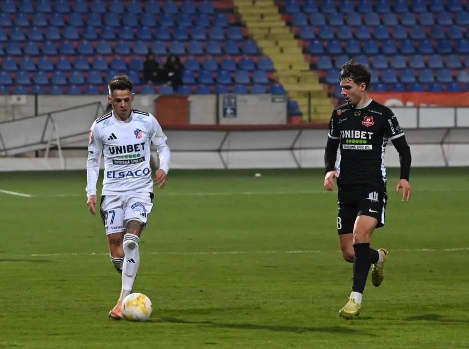 George Alexandru Campanu si Kevin Andrei Ciubotaru in meciul de fotbal dintre FC Botosani si AFC Hermannstadt Sibiu, contand pentru Cupa Romaniei Betano, desfasurat pe Stadionul Municipal din Botosani, miercuri 3 decembrie 2025. © FOTO:Tudy/SPORT PICTURES