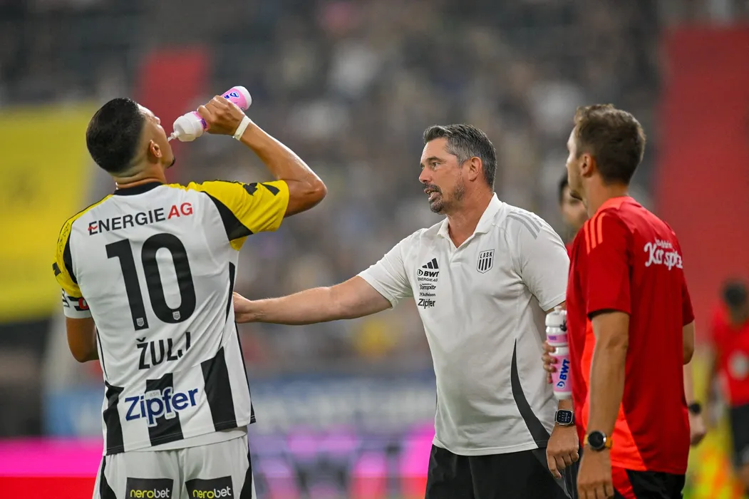 LINZ, AUSTRIA -AUGUST 17: Robert Zulj (ASK), Thomas Darazs, Head Coach Lask Linz (ASK) im Admiral Bundesligaspiel zwischen Lask v Red Bull Salzburg Raiffeisen Arena am August 17, 2024 in Linz, Austria.240817_SEPA_20_130 - 20240817_PD14630,Image: 899592539, License: Rights-managed, Restrictions: AUSTRIA OUT, GERMANY OUT, SWITZERLAND OUT, UK OUT