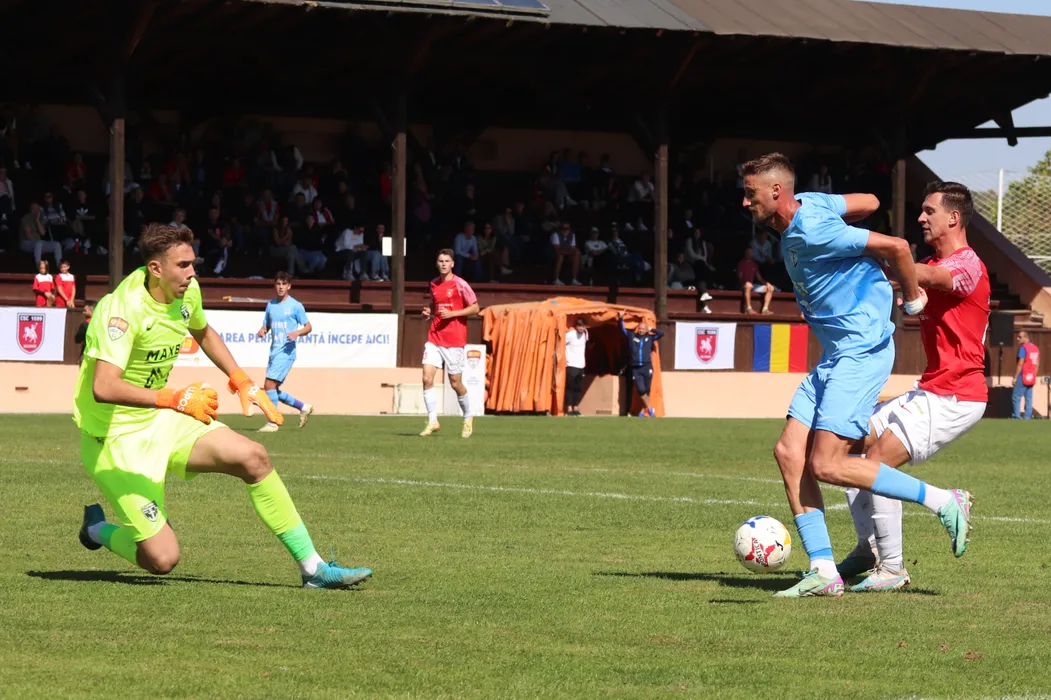 Alexandru Gabriel Maxim și Radu Crișan în meciul de fotbal dintre CSC 1599 Șelimbăr și FC Voluntari, contând pentru Liga 2 Casa Pariurilor, desfășurat pe Stadionul Măgura din Cisnădie, sâmbătă 21 septembrie 2024. © FOTO: Valentin MACREA/SPORT PICTURES