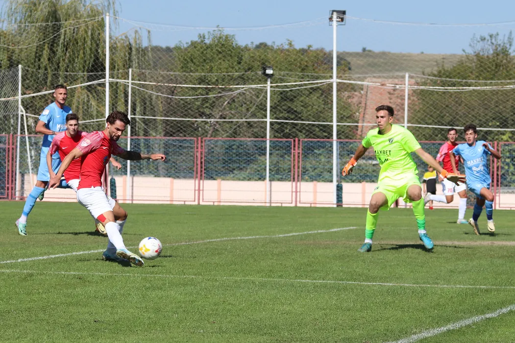 Rodri Hernando și Alexandru Gabriel Maxim în meciul de fotbal dintre CSC 1599 Șelimbăr și FC Voluntari, contând pentru Liga 2 Casa Pariurilor, desfășurat pe Stadionul Măgura din Cisnădie, sâmbătă 21 septembrie 2024. © FOTO: Valentin MACREA/SPORT PICTURES