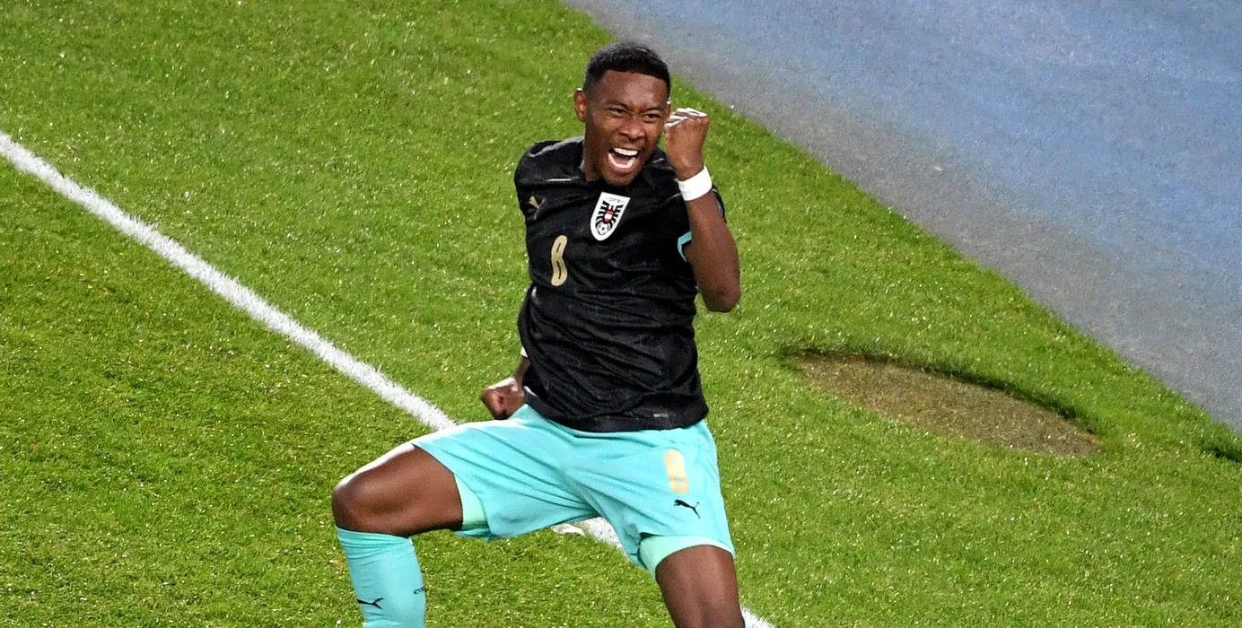 16 November 2019, Austria, Vienna: Austria's David Alaba celebrates scoring his side's first goal during the UEFA EURO 2020 qualifiers Group G soccer match between Austria and North Macedonia at the Ernst Happel Stadium. Photo: Roland Schlager/APA/dpa