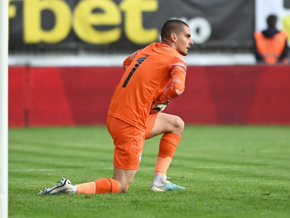 Octavian Gabriel Valceanu retine un balon la meciul de fotbal dintre Petrolul Ploiesti si FC Voluntari, din cadrul Superligii Superbet, desfasurat pe Stadionul Ilie Oana din Ploiesti, luni 31 iulie 2023. © FOTO:Razvan Pasarica/SPORT PICTURES