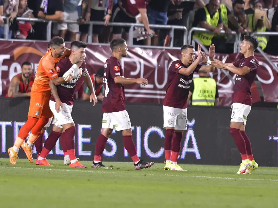 Bucurie a fotbalistilor rapidisti dupa un gol marcat cu Horatiu Alexandru Moldovan, Cristian Ionut Sapunaru, Alexandru Ionita, Valentin Ionut Costache si Antonio Valentin Sefer in meciul de fotbal dintre Rapid Bucuresti si FCSB, contand pentru Superliga Superbet, desfasurat pe Stadionul Rapid Giulesti din Bucuresti, duminica 24 iulie 2022. © FOTO:Razvan Pasarica/SPORT PICTURES