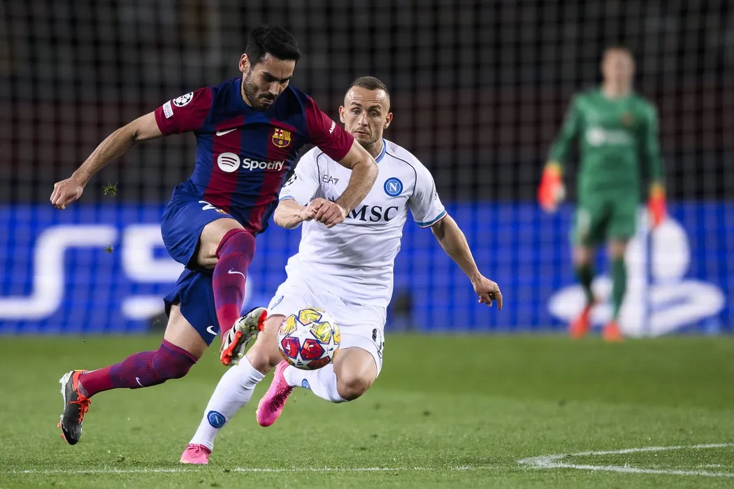 FC Barcelona, Barca v SSC Napoli - UEFA Champions League Älkay Gundogan of FC Barcelona competes for the ball with Stanislav Lobotka of SSC Napoli during the UEFA Champions League round of 16 second leg football match between FC Barcelona and SSC Napoli. Barcelona Spain Copyright: xNicolňxCampox,Image: 856598497, License: Rights-managed, Restrictions: Credit images as "Profimedia/ IMAGO", Model Release: no